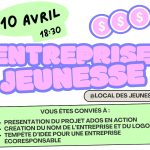 10 avril | ENTREPRISE JEUNESSEEnvie de participer à une entreprise jeunesse écoresponsable? Viens découvrir notre projet, le 10 avril, à 18h30 au local des jeunes!... lire la suite